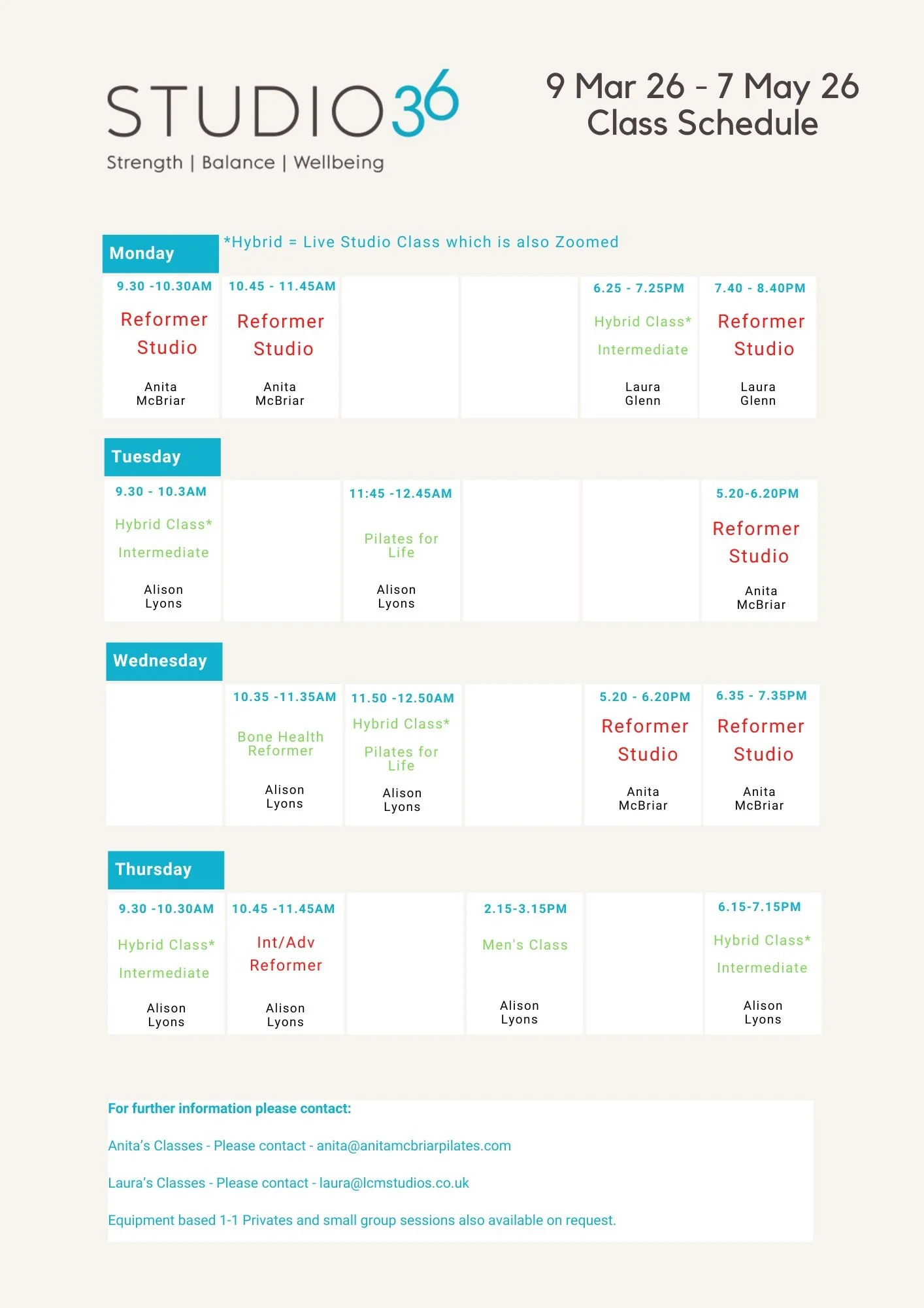 Since Covid-19 we are teaching most matwork classes in studio plus Zoom.